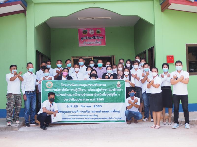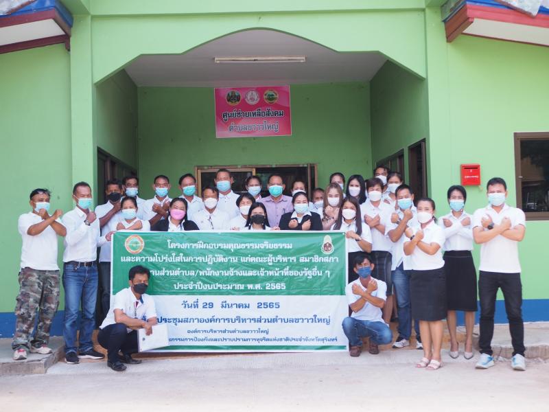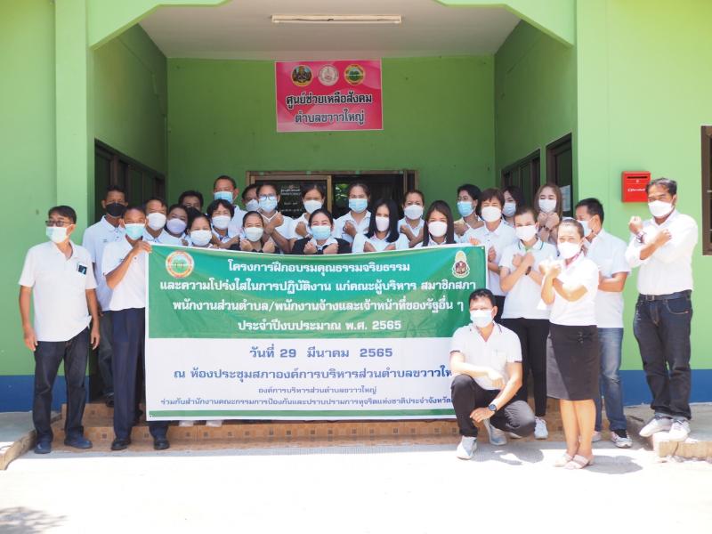รายละเอียด : องค์การบริหารส่วนตำบลขวาวใหญ่ ได้จัดทำโครงการฝึกอบรมคุณธรรมจริยธรรม และความโปร่งใสในการปฏิบัติงาน แก่คณะผู้บริหาร สมาชิกสภา พนักงานส่วนตำบล/พนักงานจ้างและเจ้าหน้าที่ของรัฐอื่น ๆ ประจำปีงบประมาณ พ.ศ.2565 ร่วมกับสำนักงานคณะกรรมการป้องกันและปราบปรามการทุจริตแห่งชาติประจำจังหวัดสุรินทร์ ได้มาเป็นวิทยากรในการสร้างความรู้ความเข้าใจ ตลอดจนความสำนึกและความตระหนักให้แก่ผู้เข้ารับการอบรมในฐานะผู้ใช้อำนาจรัฐเกี่ยวกับการป้องกันและปราบปรามการทุจริต เมื่อวันที่ 29 มีนาคม 2565