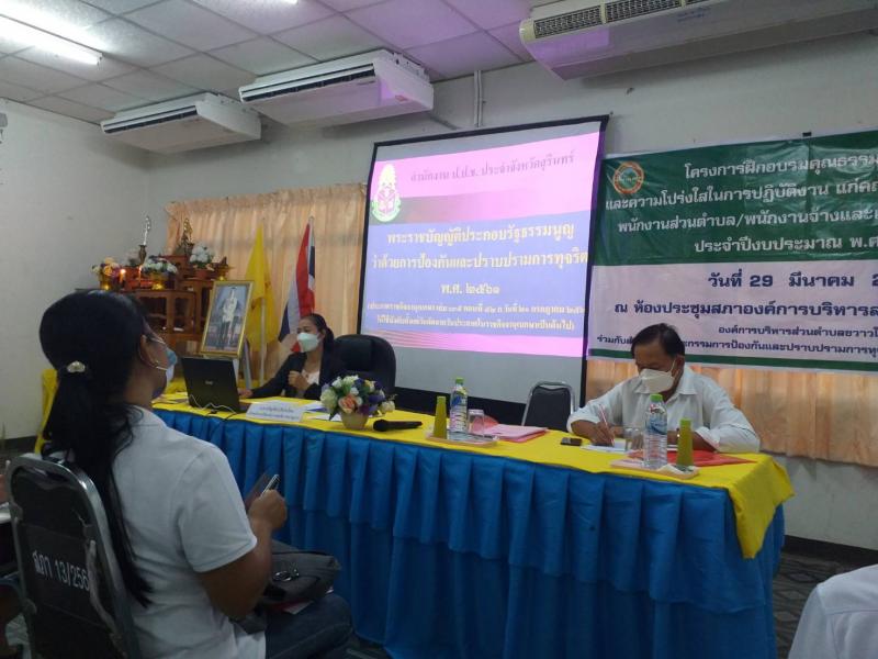 โครงการฝึกอบรมคุณธรรมจริยธรรม และความโปร่งใสในการปฏิบัติงาน แก่คณะผู้บริหาร สมาชิกสภา พนักงานส่วนตำบล/พนักงานจ้างและเจ้าหน้าที่ของรัฐอื่น ๆ ประจำปีงบประมาณ พ.ศ.2565