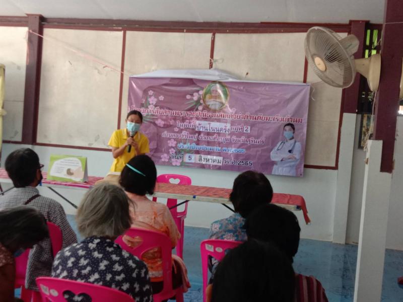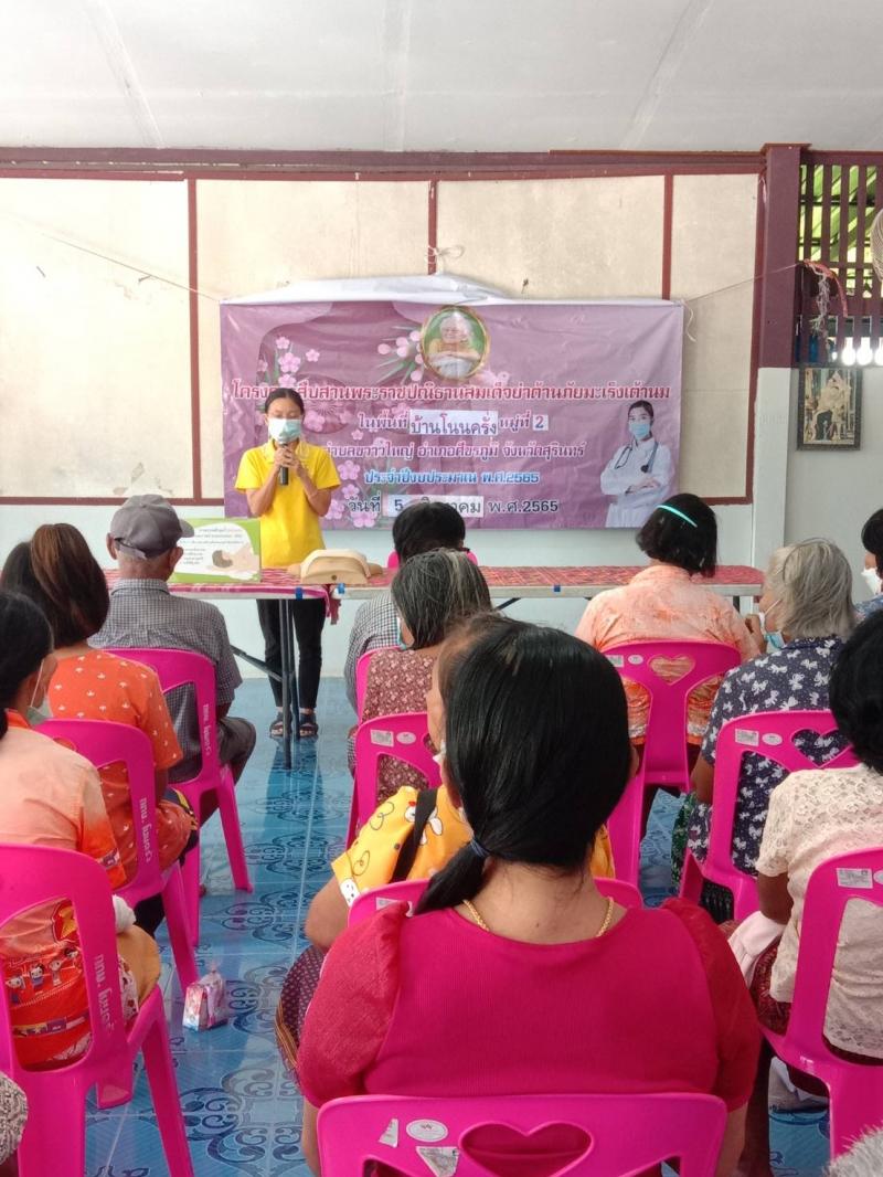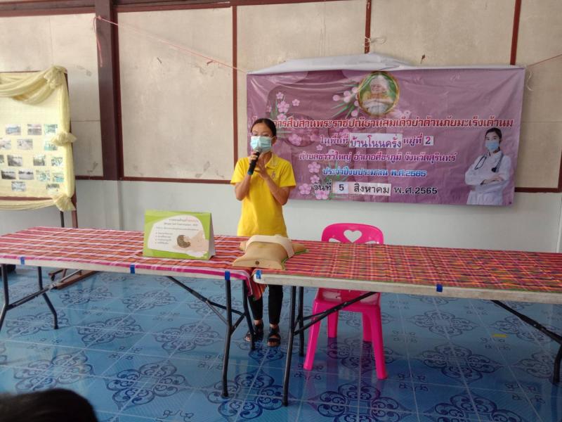 โครงการพระราชดำริด้านสาธารณสุข โครงการสืบสานพระราชปณิธานสมเด็จย่าต้านภัยมะเร็งเต้านม บ้านโนนครั่ง หมู่ที่ 2 ตำบลขวาวใหญ่ อำเภอศีขรภูมิ จังหวัดสุรินทร์ ตามงบประมาณเงินอุดหนุนสำหรับการดำเนินงานตามแนวทางโครงการพระราชดำริด้านสาธารณสุข ประจำปีงบประมาณ พ.ศ.2565