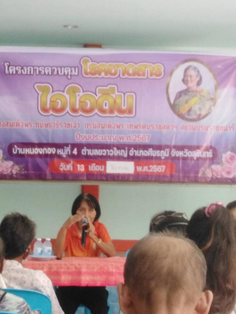 โครงการควบคุมโรคขาดสารไอโอดีน ของสมเด็จพระกนิษฐา ธิราชเจ้ากรมสมเด็จพระเทพรัตนราชสุดาฯ สยามบรมราชกุมารี บ้านหนองกอง หมู่ที่ 4 ตำบลขวาวใหญ่ อำเภอศีขรภูมิ จังหวัดสุรินทร์