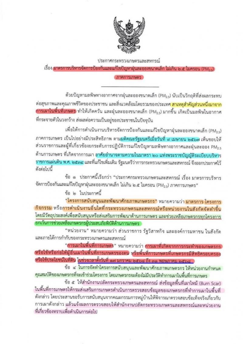 ประกาศ การงดเผา ตามมาตรการจังหวัดสุรินทร์