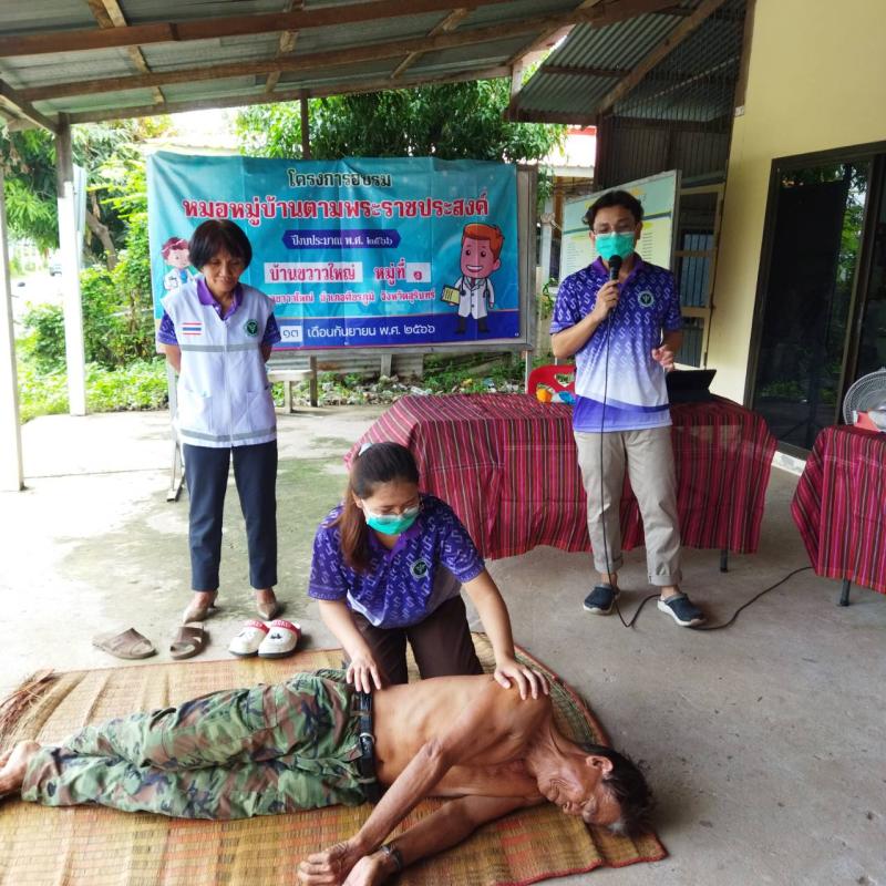 โครงการพระราชดำริด้านสาธารณสุข โครงการอบรมหมอหมู่บ้านตามพระราชประสงค์ ปีงบประมาณ พ.ศ. 2566 บ้านขวาวใหญ่ หมู่ที่ 1 ตำบลขวาวใหญ่ อำเภอศีขรภูมิ จังหวัดสุรินทร์