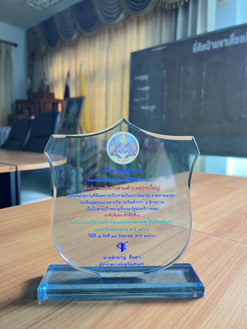 องค์การบริหารส่วนตำบลขวาวใหญ่ ได้รับมอบโล่เกียรติคุณหน่วยงานที่มีผลการใช้จ่ายและเบิกจ่ายงบประมาณรายจ่ายงบลงทุน เป็นไปตามเป้าหมายที่คณะรัฐมนตรีกำหนด ประจำปีงบประมาณ พ.ศ.2568 ระดับดีเด่น