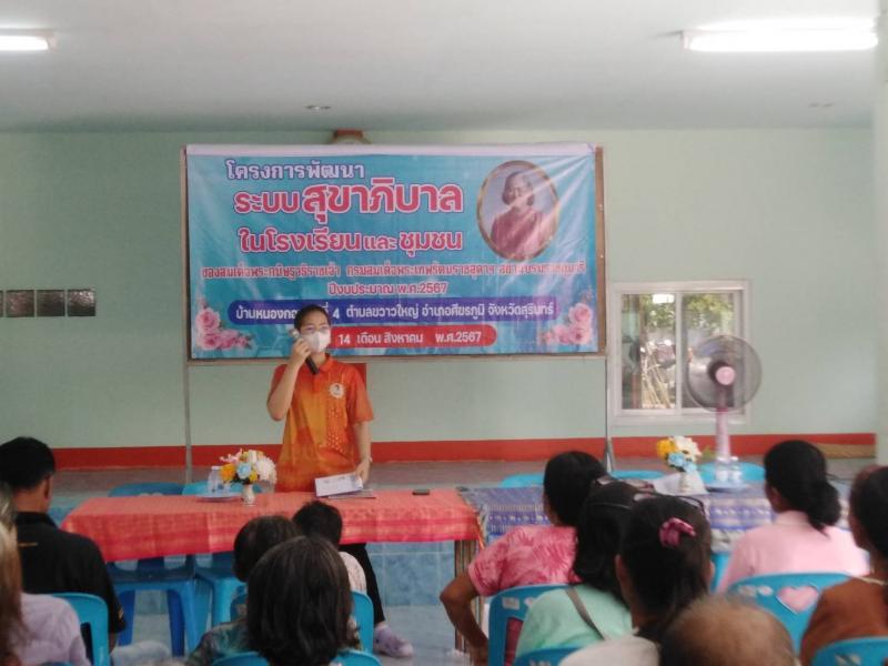 โครงการพัฒนาระบบสุขาภิบาลในโรงเรียนและชุมชน ของสมเด็จพระกนิษฐาธิราชเจ้ากรมสมเด็จพระเทพรัตนราชสุดาฯ สยามบรมราชกุมารี บ้านหนองกอง หมู่ที่ 4 ตำบลขวาวใหญ่ อำเภอศีขรภูมิ จังหวัดสุรินทร์