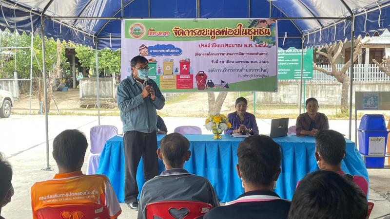 โครงการจัดการขยะมูลฝอยในชุมชน ประจำปีงบประมาณ พ.ศ. 2566 (กิจกรรมโครงการอบรมการจัดการขยะต้นทาง) ในวันอังคาร ที่ 10 มกราคม 2566 ณ องค์การบริหารส่วนตำบลขวาวใหญ่