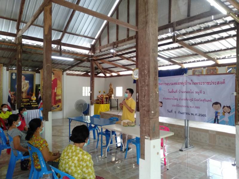 โครงการพระราชดำริด้านสาธารณสุข โครงการอบรมหมอหมู่บ้านในพระราชประสงค์ บ้านหนองไผ่ หมู่ที่ 3 ตำบลขวาวใหญ่ อำเภอศีขรภูมิ จังหวัดสุรินทร์ ตามงบประมาณเงินอุดหนุนสำหรับการดำเนินงานตามแนวทางโครงการพระราชดำริด้านสาธารณสุข ประจำปีงบประมาณ พ.ศ.2565