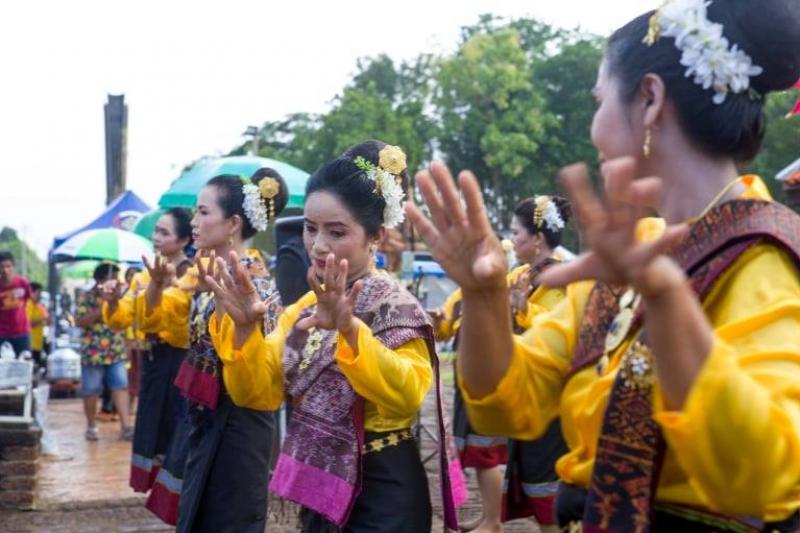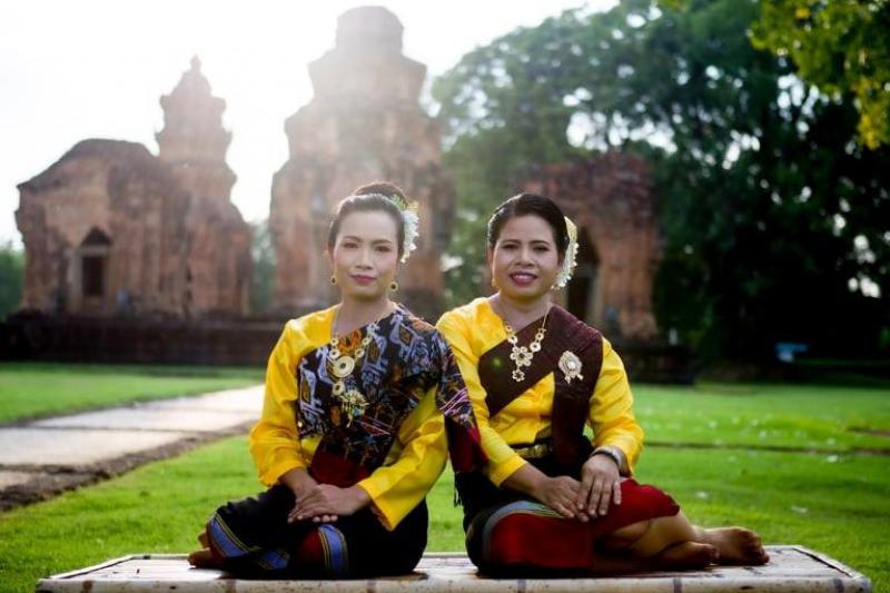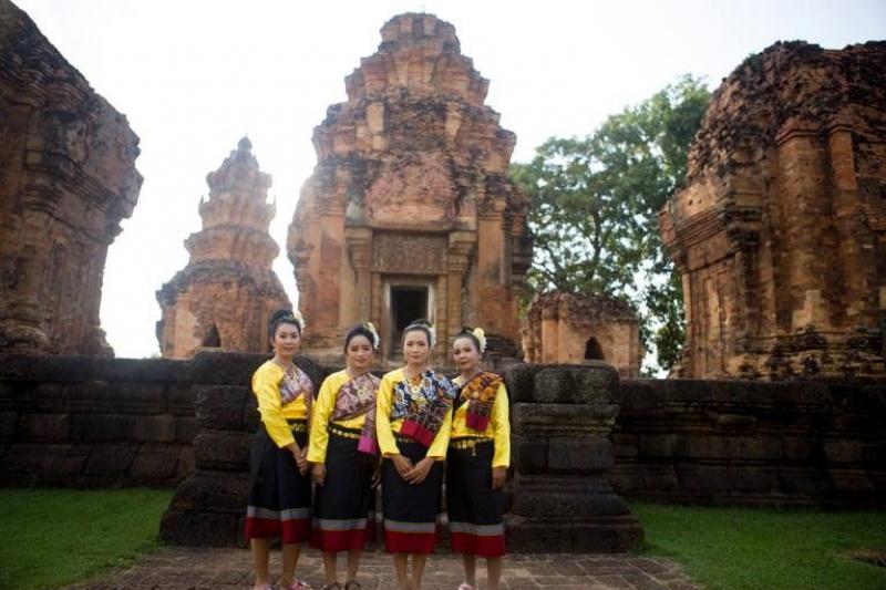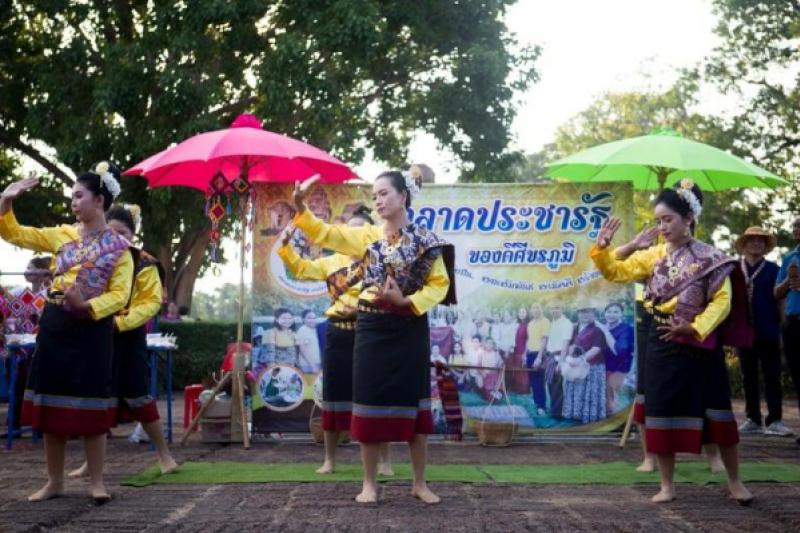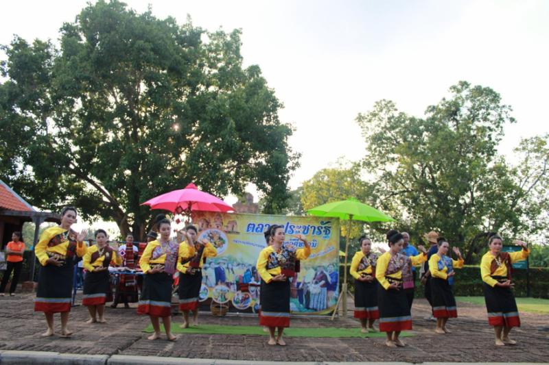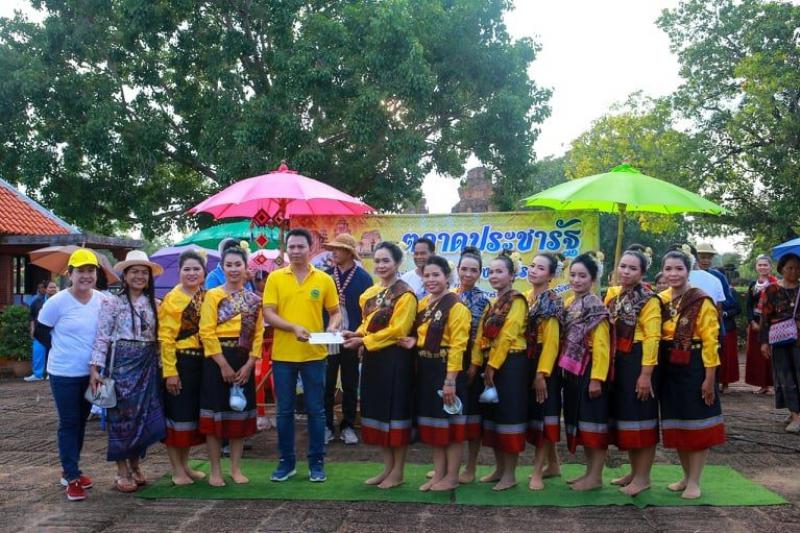 การแสดงของกลุ่มสตรีทอผ้า บ้านสำโรง ณ ตลาดประชารัฐ หน้าปราสาทศีขรภูมิ (9 ภาพ)