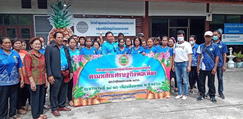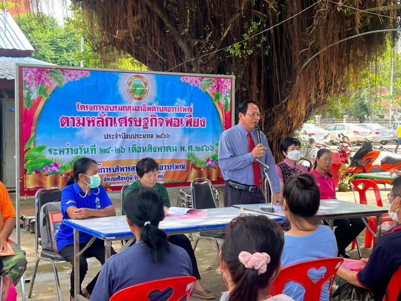 รายละเอียด : องค์การบริหารส่วนตำบลขวาวใหญ่ได้จัดทำโครงการอบรมกลุ่มอาชีพตำบลขวาวใหญ่ตามหลักเศรษฐกิจพอเพียง ประจำปี พ.ศ.2566 ระหว่างวันที่ 24 – 26 เดือนสิงหาคม พ.ศ. 2566 องค์การบริหารส่วนตำบลขวาวใหญ่ อำเภอศีขรภูมิ จังหวัดสุรินทร์ ผู้เข้าร่วมโครงการจำนวน 100 คน วัตถุประสงค์ในการดำเนินโครงการ 1.เพื่อให้ผู้เข้ารับการอบรมมีความรู้ ความเข้าใจเกี่ยวกับการพัฒนาคุณภาพชีวิตความเป็นอยู่ของประชาชนตามแนวทางปรัชญาเศรษฐกิจพอเพียง 2.เพื่อส่งเสริมให้กลุ่มอาชีพ มีโอกาสเรียนรู้ด้วยรูปแบบและวิธีการที่หลากหลาย 3.เพื่อเพิ่มพูนความรู้ ทักษะทางด้านการบริหารชุมชน เพื่อให้กลุ่มอาชีพสามารถนำนโยบายไปสู่การปฏิบัติและแก้ไขปัญหาในชุมชนได้อย่างมีประสิทธิภาพ 4.เพื่อให้เกิดแนวคิด ความร่วมมือบูรณาการ การพัฒนาทรัพยากรธรรมชาติระดับชุมชนให้มีมูลค่าเพิ่มขึ้น และสร้างโอกาสในการพัฒนาหรือเพิ่มขีดความสามารถในการเสริมสร้างศักยภาพทางเศรษฐกิจในระดับฐานรากให้กับชุมชน และการขับเคลื่อนยุทธศาสตร์การพัฒนาองค์การบริหารส่วนตำบลขวาวใหญ่