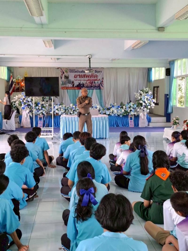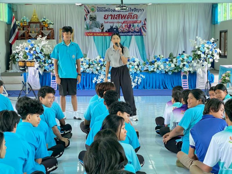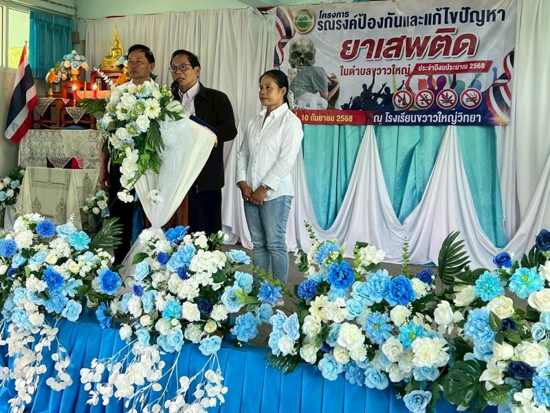รายละเอียด : องค์การบริหารส่วนตำบลขวาวใหญ่ได้จัดทำโครงการรณรงค์ป้องกันและแก้ไขปัญหายาเสพติดตำบลขวาวใหญ่ ประจำปีงบประมาณ พ.ศ.2568 จัดขึ้นวันที่ 10 กันยายน พ.ศ.2568 โดยมีวัตถุประสงค์ในการดำเนินโครงการดังนี้ 1.เพื่อปลูกจิตสำนึกของเด็กนักเรียนและเยาวชนให้มีความรู้ ความเข้าใจและตระหนักถึงพิษภัยของยาเสพติดที่มีผลต่อร่างกาย สุขภาพอนามัย และส่งผลกระทบต่อปัญหาและสังคม ตลอดจนความมั่นคงของชาติ 2.เพื่อสร้างแกนนำนักเรียนและเยาวชนให้ห่างไกลยาเสพติด และต่อต้านยาเสพติดในสถานศึกษาและชุมชน 3.เพื่อเป็นการรวมพลังจากทุกภาคส่วนของสังคมให้เข้ามามีส่วนร่วมในการแก้ไขปัญหายาเสพติดในสถานศึกษา 4. เพื่อพัฒนาคุณภาพเด็กและเยาวชนให้มีภูมิคุ้มกันต่อการเปลี่ยนแปลงทางสังคม มีความพร้อมทั้งด้านร่างกายและจิตใจ มีผู้เข้าร่วมโครงการจำนวน 87 คน คณะผู้บริหาร, คณะครูและบุคลากรทางการศึกษา นักเรียนชั้นมัธยมศึกษาปีที่ 1 - 6 ,นักงานส่วนตำบล พนักงานจ้างและประชาชน เข้าร่วมโครงการดังกล่าว