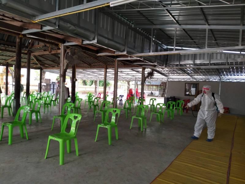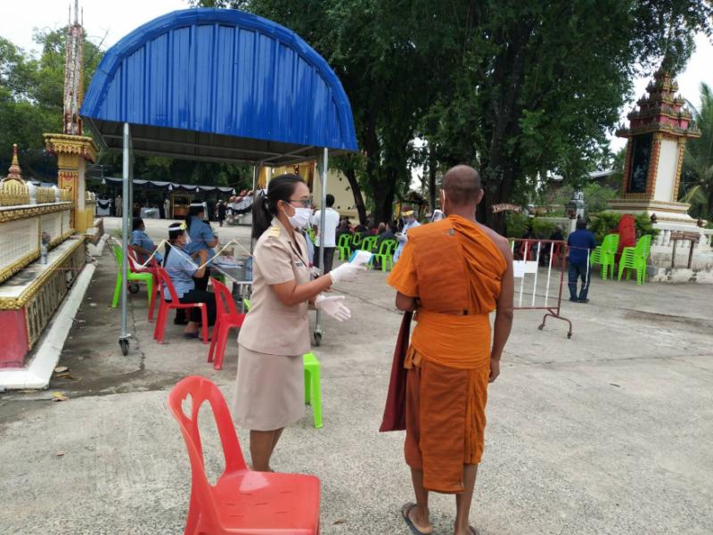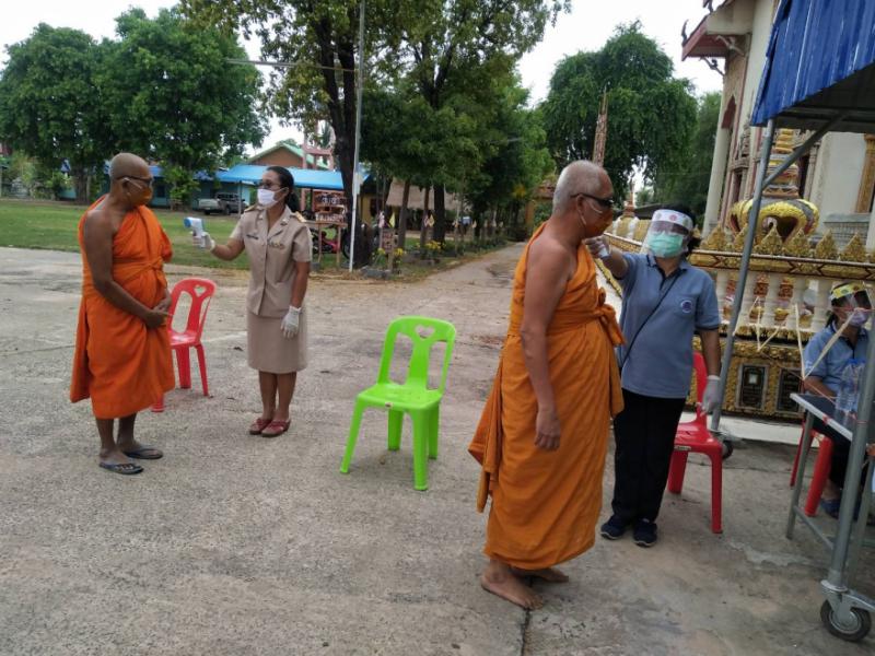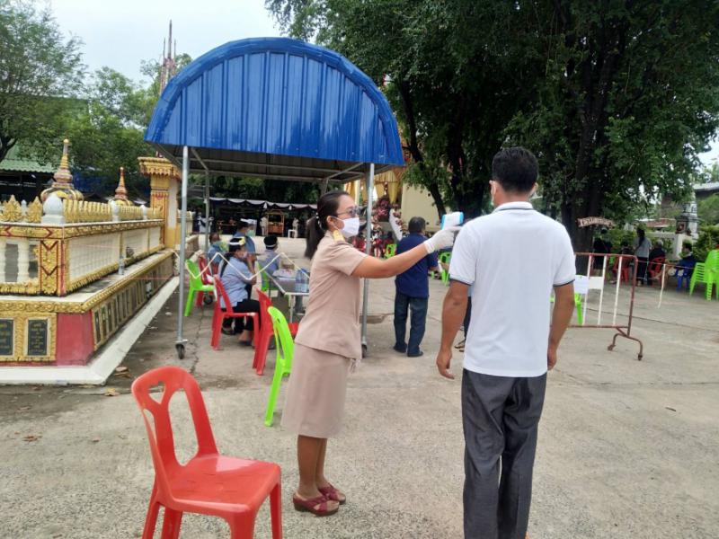ฉีดพ่นยาฆ่าเชื้อ วัดอุณหภูมิคัดกรองผู้มาร่วมงาน และอำนวยความสะดวกภายในงานศพ ณ บริเวณวัดบ้านขวาวใหญ่ เพื่อป้องกันการแพร่ระบาดของเชื้อไวรัส (14 ภาพ)
