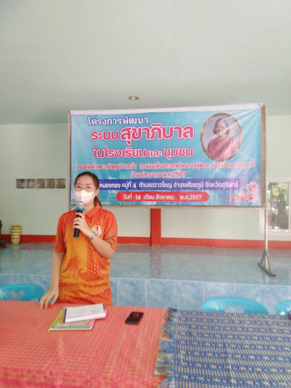โครงการพัฒนาระบบสุขาภิบาลในโรงเรียนและชุมชน ของสมเด็จพระกนิษฐาธิราชเจ้ากรมสมเด็จพระเทพรัตนราชสุดาฯ สยามบรมราชกุมารี บ้านหนองกอง หมู่ที่ 4 ตำบลขวาวใหญ่ อำเภอศีขรภูมิ จังหวัดสุรินทร์ [2 ตุลาคม 2567]