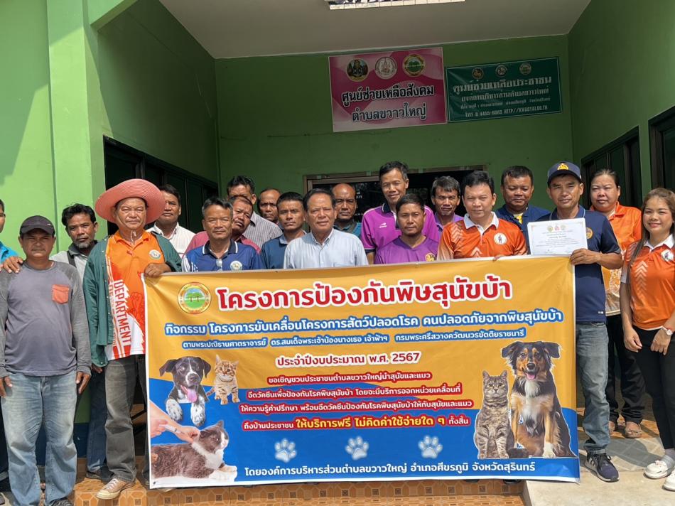 ประชาสัมพันธ์รณรงค์ป้องกันโรคพิษสุนัขบ้าในเขตพื้นที่ อบต.ขวาวใหญ่ [8 พฤษภาคม 2567]