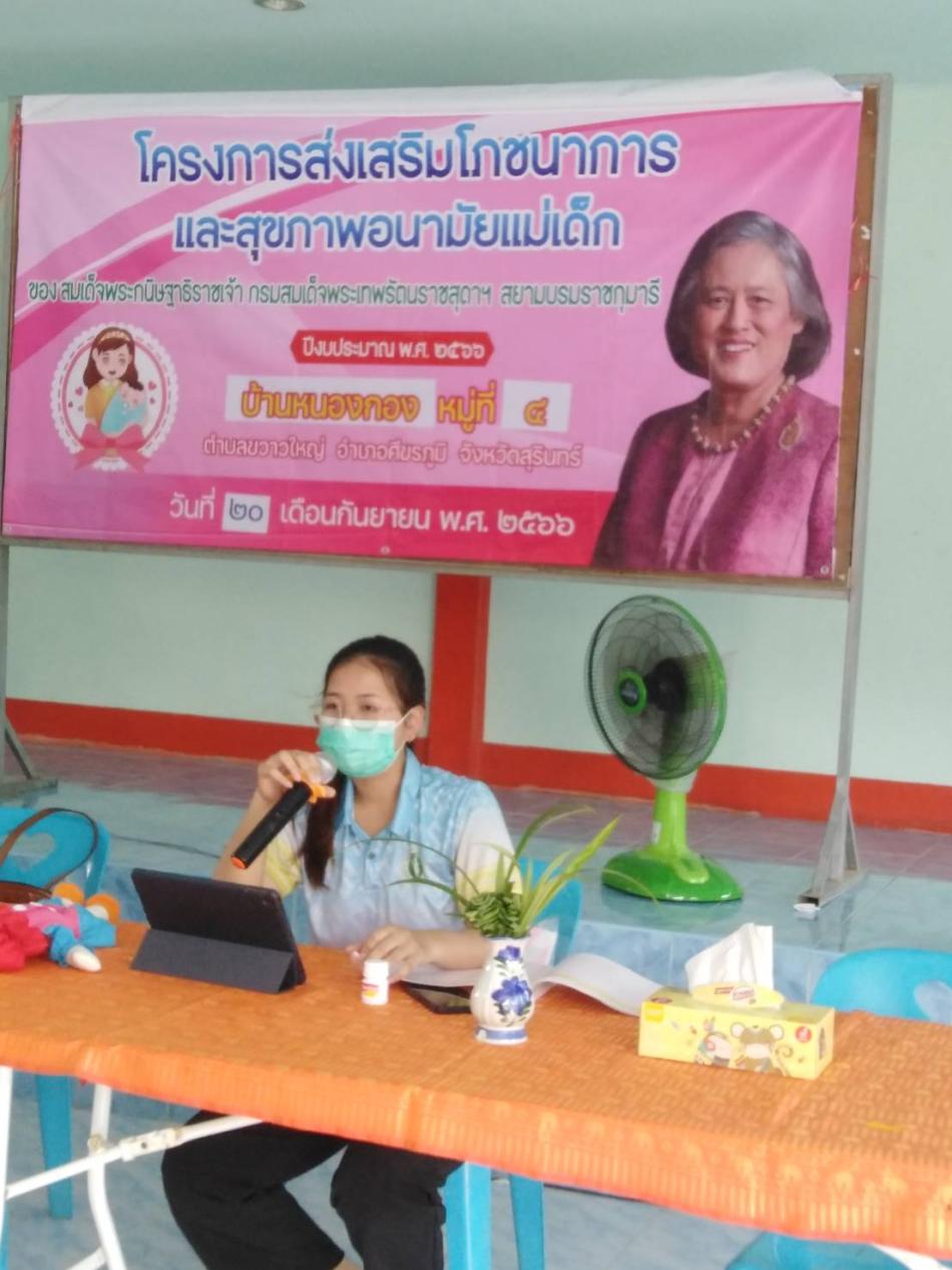 โครงการพระราชดำริด้านสาธารณสุข โครงการส่งเสริมโภชนาการและสุขภาพอนามัยแม่และเด็ก ของสมเด็จพระกนิษฐาธิราชเจ้า กรมสมเด็จพระเทพรัตนราชสุดาฯ สยามบรมราชกุมารี ปีงบประมาณ พ.ศ. 2566 บ้านหนองกอง หมู่ที่ 4 ตำบลขวาวใหญ่... [20 กันยายน 2566]