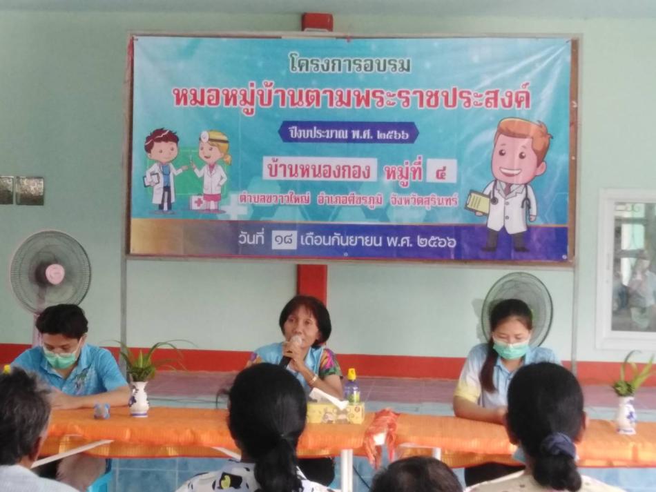 โครงการพระราชดำริด้านสาธารณสุข โครงการอบรมหมอหมู่บ้านตามพระราชประสงค์ ปีงบประมาณ พ.ศ. 2566 บ้านหนองกอง หมู่ที่ 4 ตำบลขวาวใหญ่ อำเภอศีขรภูมิ จังหวัดสุรินทร์ [20 กันยายน 2566]