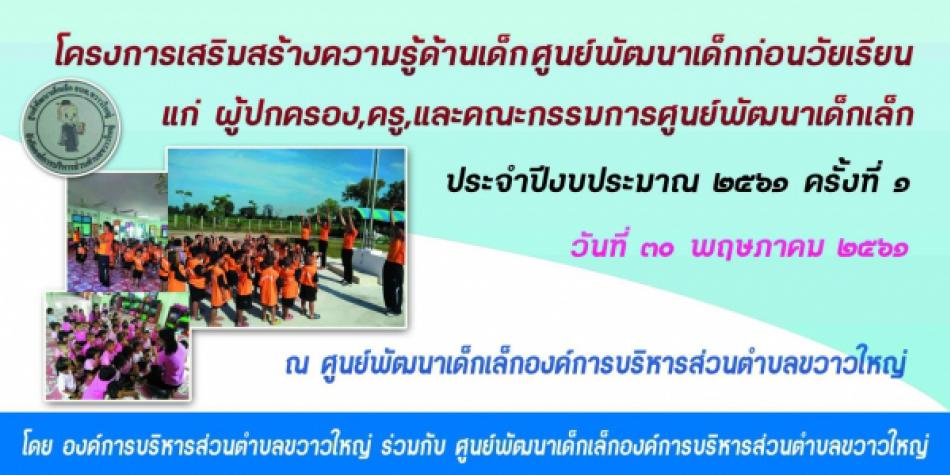 โครงการเสริมสร้างความรู้ด้านเด็กก่อนวัยเรียน แก่ผู้ปกครอง ครู คณะกรรมการศูนย์พัฒนาเด็กเล็กองค์การบริหารส่วนตำบลขวาวใหญ่ (10 ภาพ)