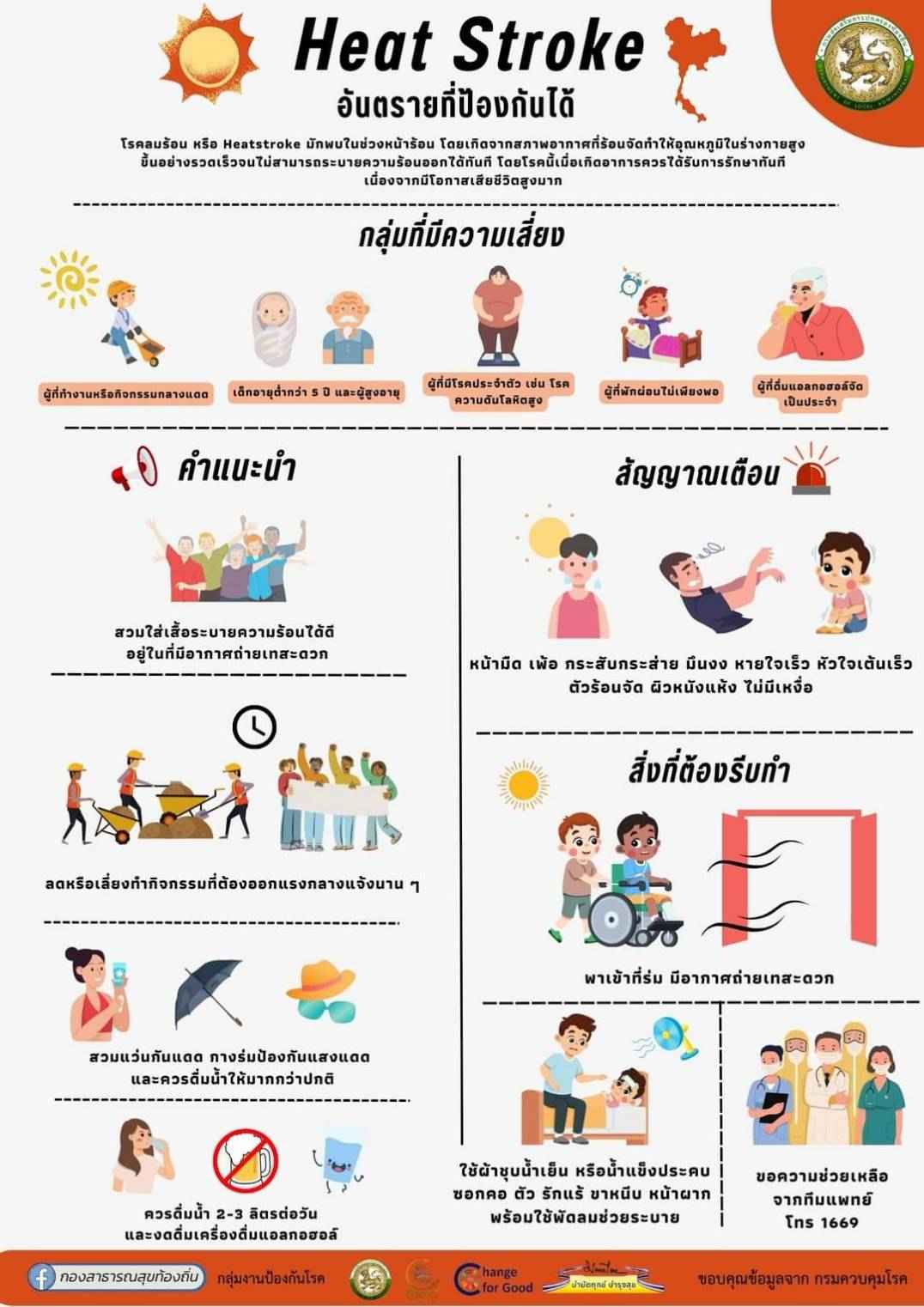 รายละเอียด : ด้วยเดือนเมษายน-พฤษภาคม ๒๕๖๖ ประเทศไทยเข้าสู่ฤดูร้อนอย่างเป็นทางการ ซึ่งประชาชนมีโอกาสป่วยเป็นโรคฮีทสโตรถ