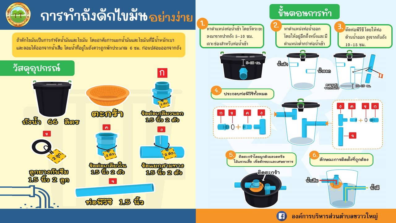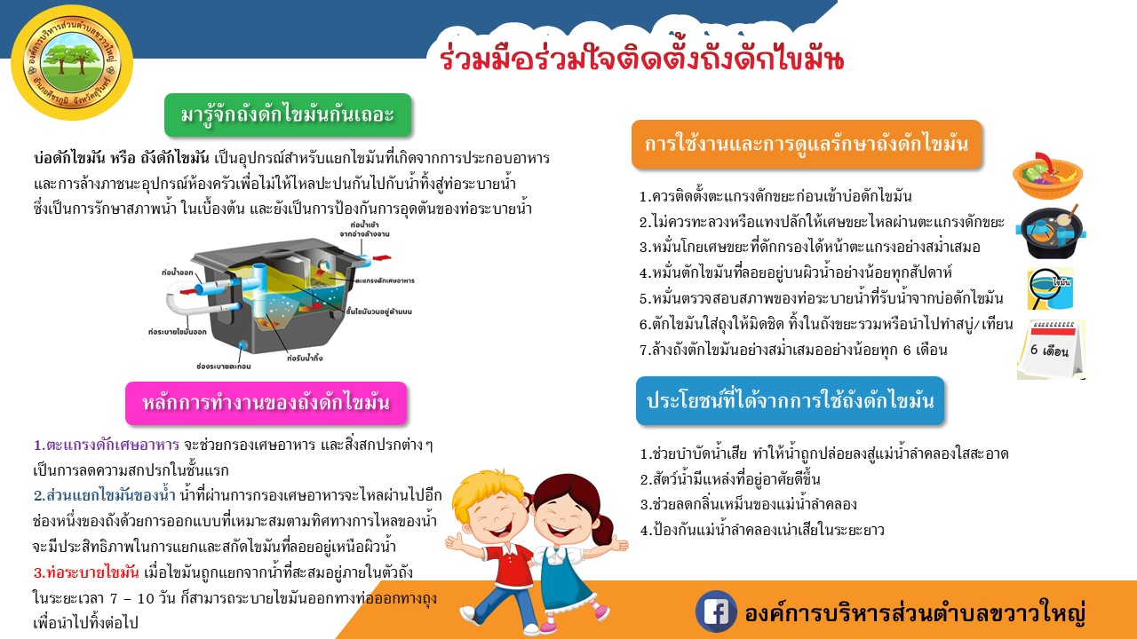 ชื่อเรื่อง : ประชาสัมพันธ์รณรงค์ให้ประชาชน โรงเรียน ตลาด ร้านอาหาร และโรงแรมติดตั้งบ่อดักไขมันในอาคาร