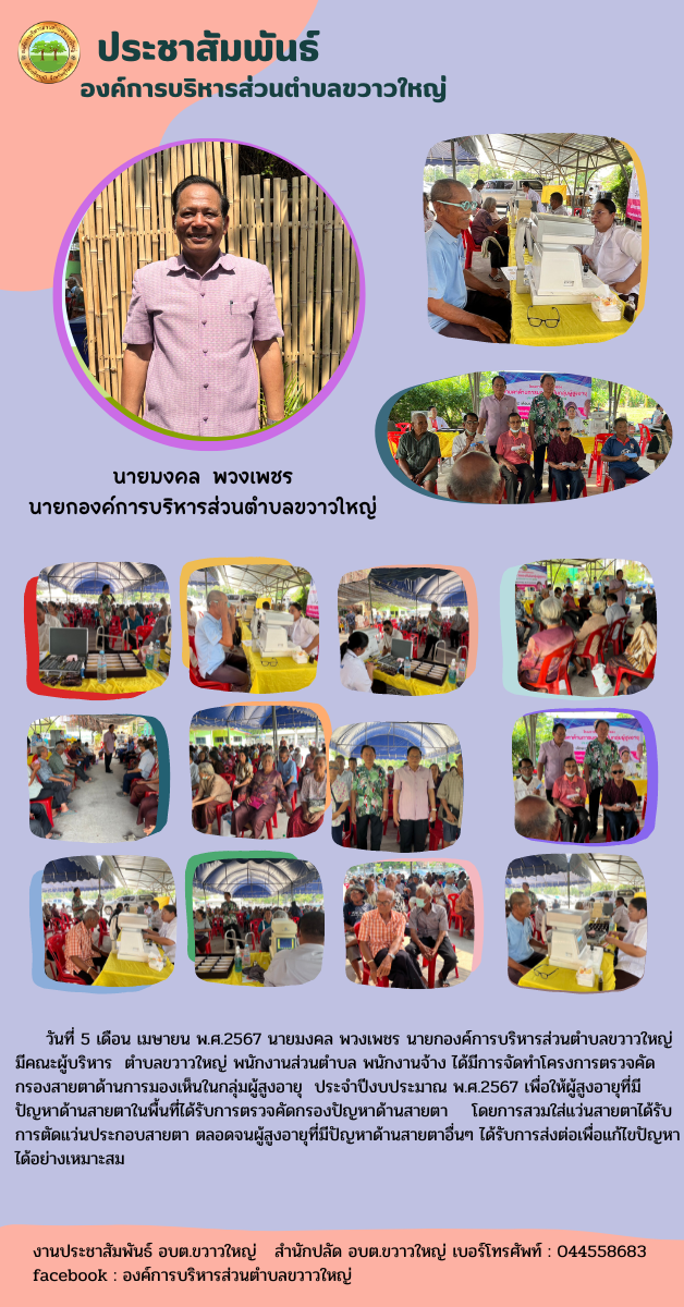 รายละเอียด : โครงการตรจคัดกรองสายตา ด้านการมองเห็นกลุ่มผู้สูงอายุ