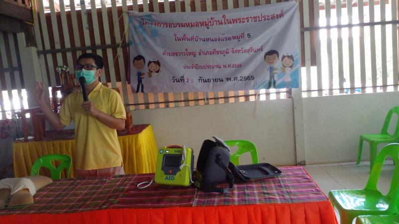 โครงการพระราชดำริด้านสาธารณสุข โครงการอบรมหมอหมู่บ้านในพระราชประสงค์ บ้านหนองแรต หมู่ที่ 5 ตำบลขวาวใหญ่ อำเภอศีขรภูมิ จังหวัดสุรินทร์ ตามงบประมาณเงินอุดหนุนสำหรับการดำเนินงานตามแนวทางโครงการพระราชดำริด้านสาธารณสุข ประจำปีงบประมาณ พ.ศ.2565