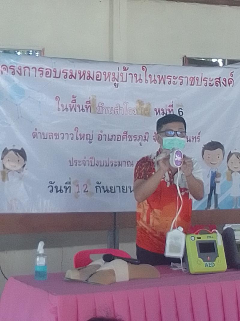 โครงการพระราชดำริด้านสาธารณสุข โครงการอบรมหมอหมู่บ้านในพระราชประสงค์ บ้านสำโรง หมู่ที่ 6 ตำบลขวาวใหญ่ อำเภอศีขรภูมิ จังหวัดสุรินทร์ ตามงบประมาณเงินอุดหนุนสำหรับการดำเนินงานตามแนวทางโครงการพระราชดำริด้านสาธารณสุข ประจำปีงบประมาณ พ.ศ.2565
