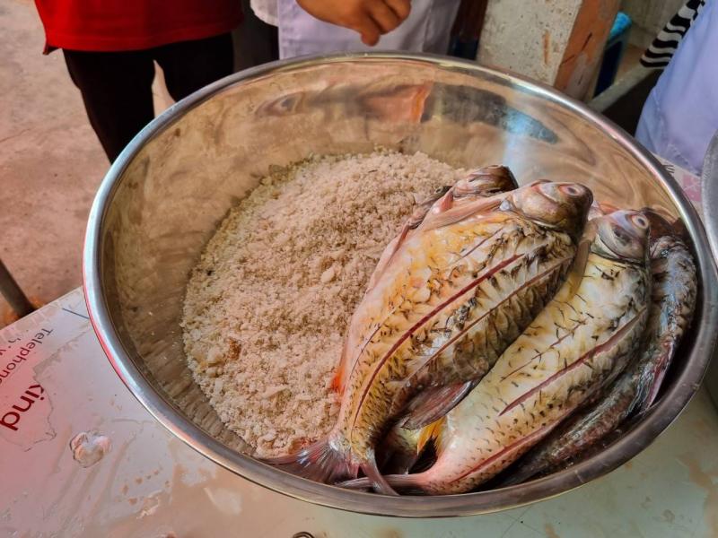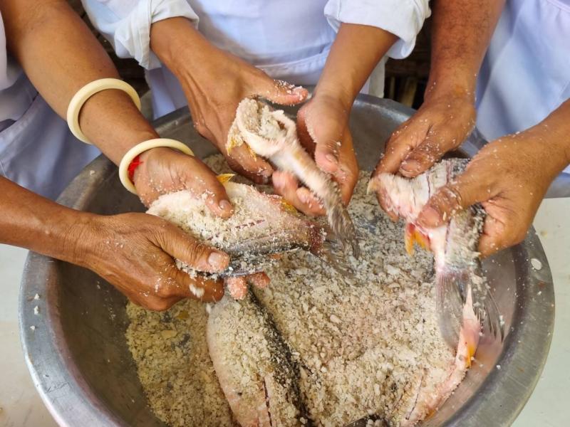 รายละเอียด : การแปรรูปอาหาร ปลาส้มไส้กรอกของกลุ่มแม่บ้านไพรษร โดย นางบัวบาน แก้วพิจนิจ ประธานกลุ่ม