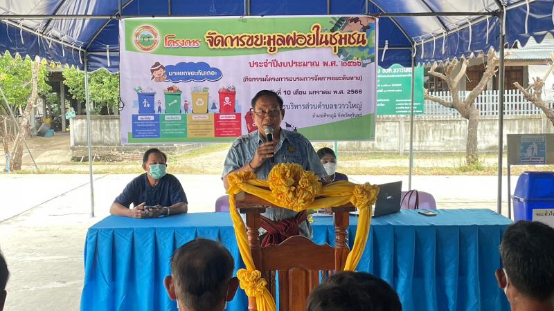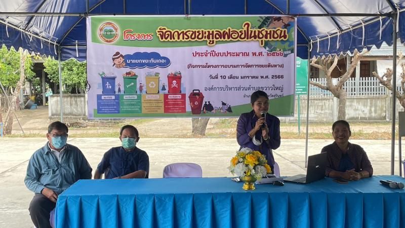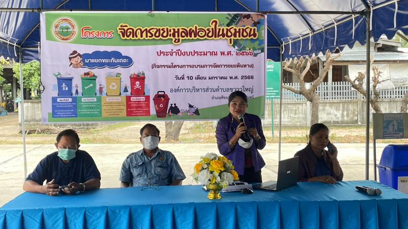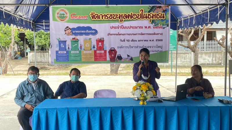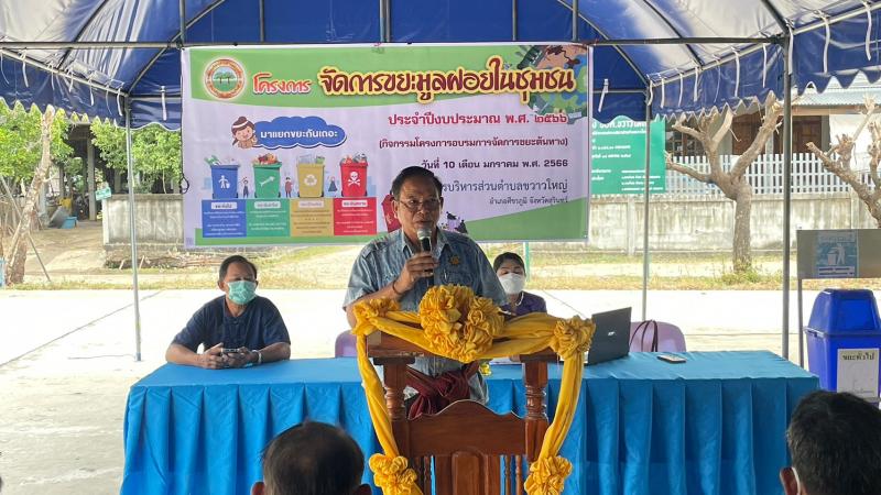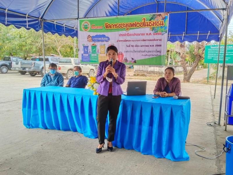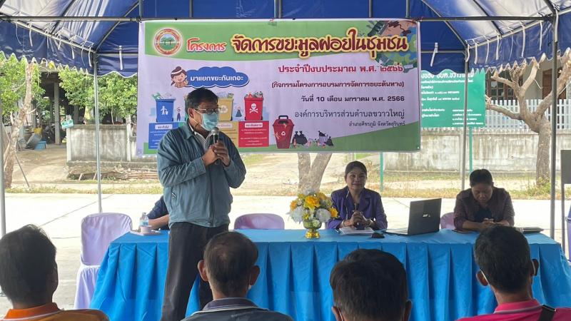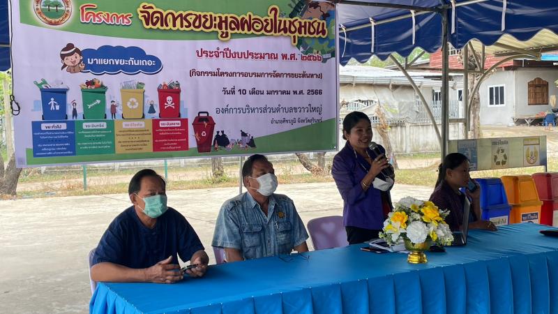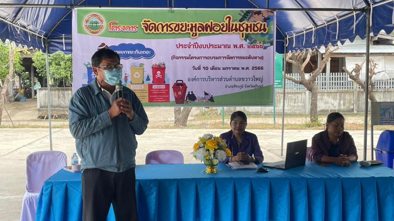 โครงการจัดการขยะมูลฝอยในชุมชน ประจำปีงบประมาณ พ.ศ. 2566 (กิจกรรมโครงการอบรมการจัดการขยะต้นทาง) ในวันอังคาร ที่ 10 มกราคม 2566 ณ องค์การบริหารส่วนตำบลขวาวใหญ่