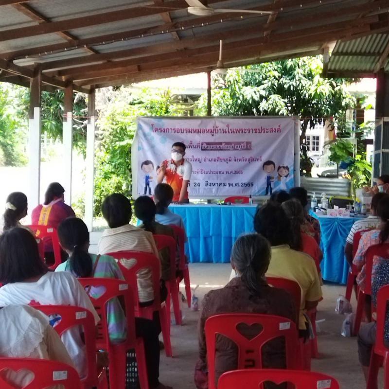โครงการพระราชดำริด้านสาธารณสุข โครงการอบรมหมอหมู่บ้านในพระราชประสงค์ บ้านขวาวใหญ่ หมู่ที่ 1 ตำบลขวาวใหญ่ อำเภอศีขรภูมิ จังหวัดสุรินทร์ ตามงบประมาณเงินอุดหนุนสำหรับการดำเนินงานตามแนวทางโครงการพระราชดำริด้านสาธารณสุข ประจำปีงบประมาณ พ.ศ.2565