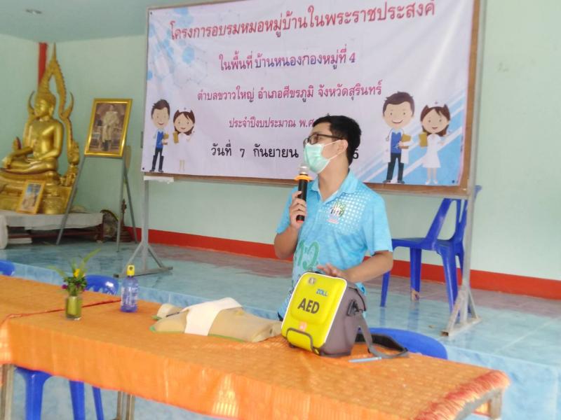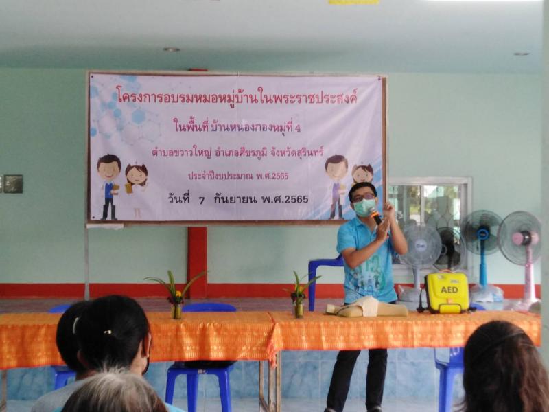 โครงการพระราชดำริด้านสาธารณสุข โครงการอบรมหมอหมู่บ้านในพระราชประสงค์ บ้านหนองกอง หมู่ที่ 4 ตำบลขวาวใหญ่ อำเภอศีขรภูมิ จังหวัดสุรินทร์ ตามงบประมาณเงินอุดหนุนสำหรับการดำเนินงานตามแนวทางโครงการพระราชดำริด้านสาธารณสุข ประจำปีงบประมาณ พ.ศ.2565
