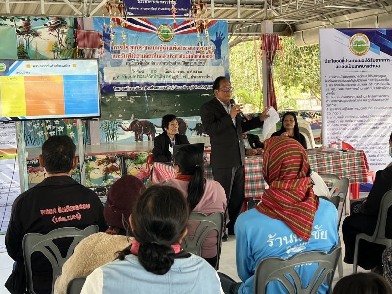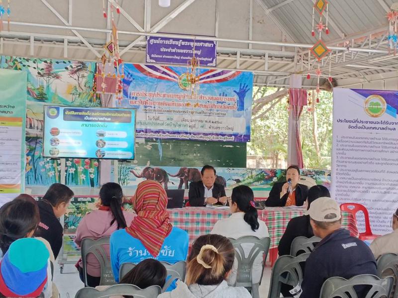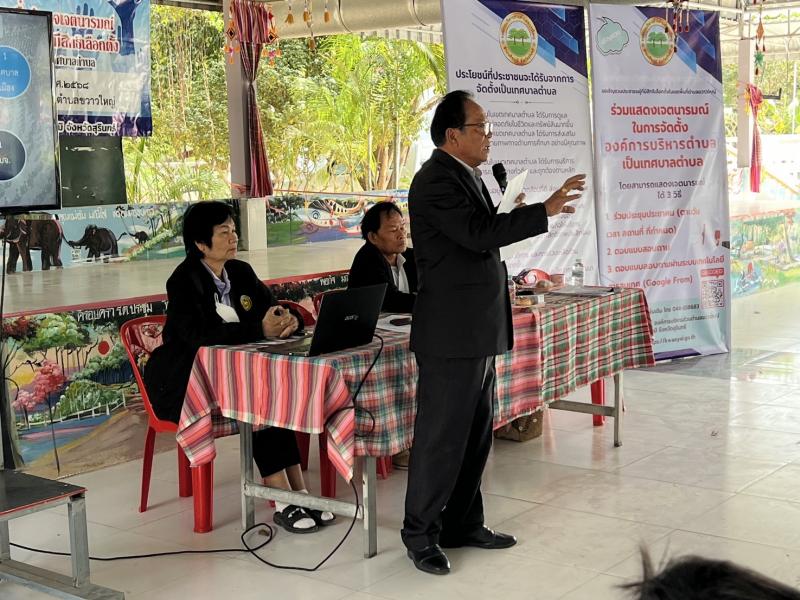 การประชาคมหมู่บ้านเพื่อสำรวจเจตนารมณ์และรับฟังความคิดเห็นของประชาชนผู้มีสิทธิเลือกตั้ง กรณีการจัดตั้งองค์การบริหารส่วนตำบลเป็นเทศบาลตำบล ในวันที่ 16 มกราคม พ.ศ.2568 ณ.ศาลาเอนกประสงค์บ้านไพรษร หมู่ที่ 7 ตำบลขวาวใหญ่ อำเภอศีขรภูมิ จังหวัดสุรินทร์
