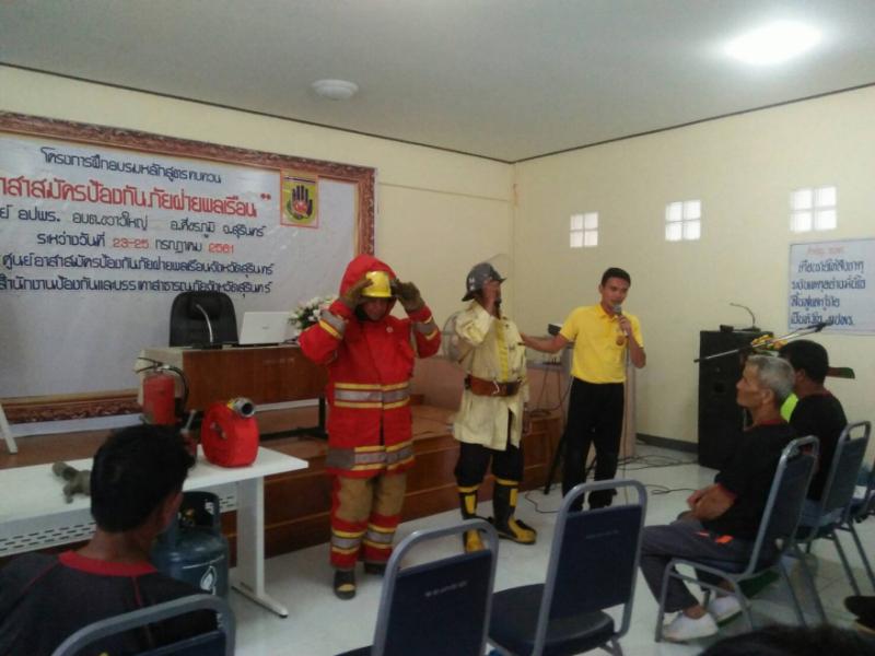 รายละเอียด : โครงการฝึกอบรมหลักสูตรทบทวน "อาสาสมัครป้องกันภัยฝ่ายพลเรือน" ศูนย์ อปพร. องค์การบริหารส่วนตำบลขวาวใหญ่ อำเภอศีขรภูมิ จังหวัดสุรีนทร์ ระหว่างวันที่ 23-25 กรกฎาคม 2561