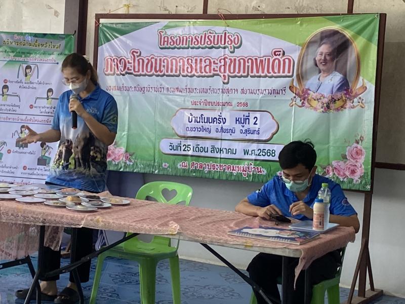 โครงการปรับปรุงภาวะโภชนาการและสุขภาพเด็ก ของสมเด็จพระกนิษฐาธิราชเจ้า กรมสมเด็จพระเทพรัตนราชสุดาฯ สยามบรมราชกุมารี ปีงบประมาณ พ.ศ. 2568 บ้านโนนครั่ง หมู่ที่ 2 ตำบลขวาวใหญ่ อำเภอศีขรภูมิ จังหวัดสุรินทร์