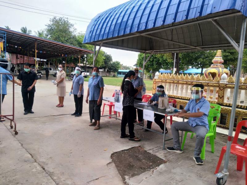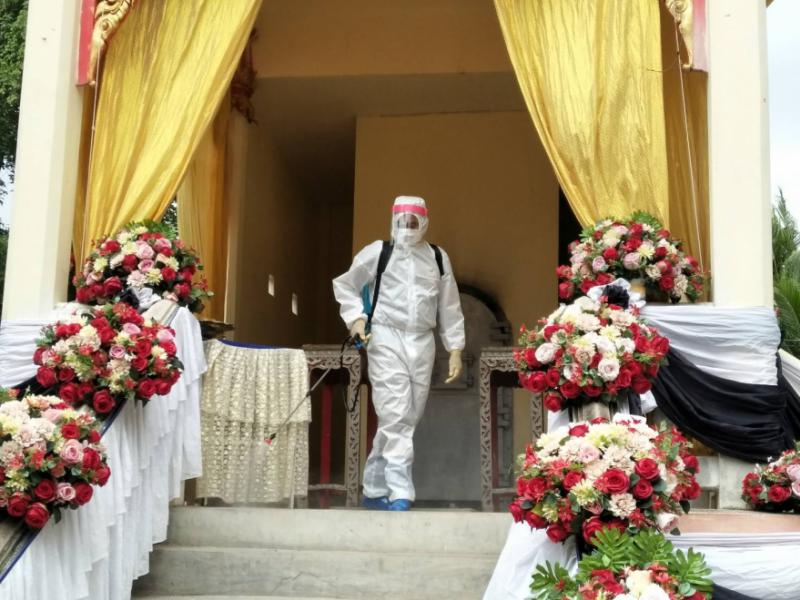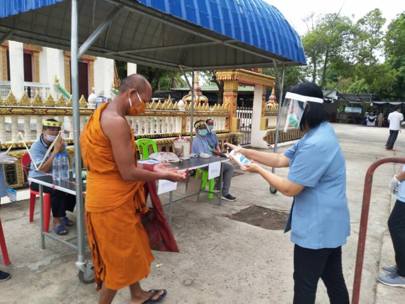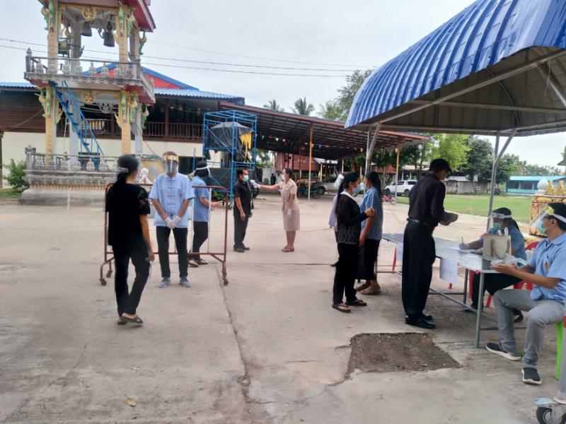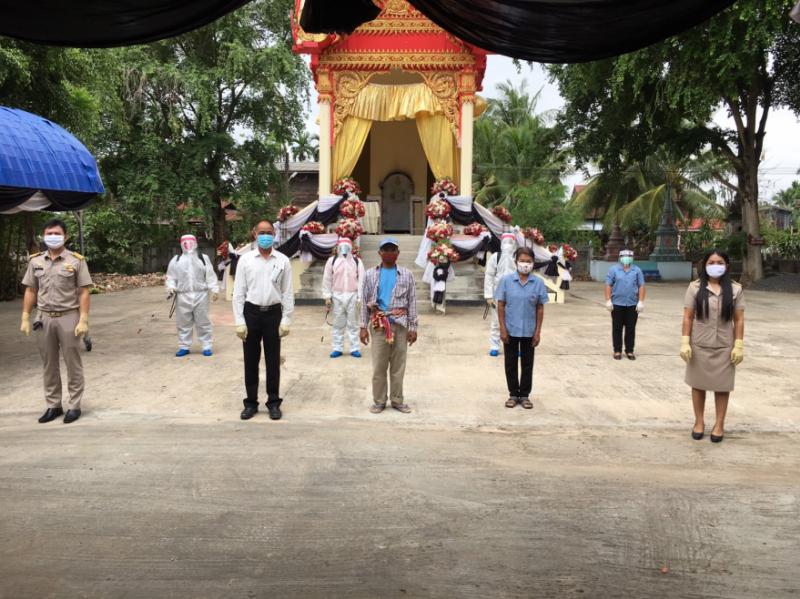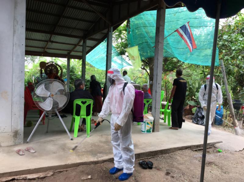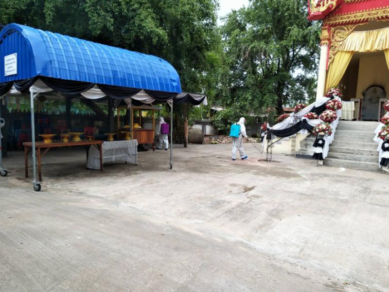 ฉีดพ่นยาฆ่าเชื้อ วัดอุณหภูมิคัดกรองผู้มาร่วมงาน และอำนวยความสะดวกภายในงานศพ ณ บริเวณวัดบ้านขวาวใหญ่ เพื่อป้องกันการแพร่ระบาดของเชื้อไวรัส (14 ภาพ)